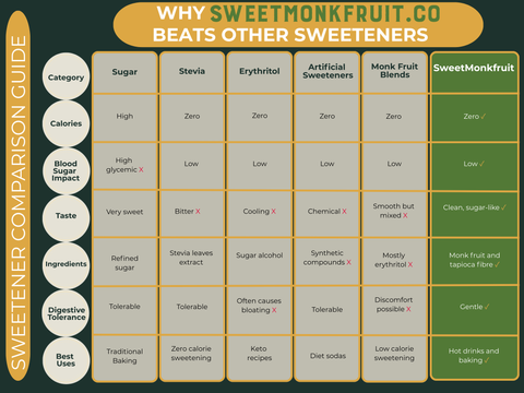I've done lots of research in the last 10 years and I had settled on using Stevia regularly for my coffees and general sweetness needs. However, this monk fruit sweetener has the same 'sweetness' as Stevia, but that botanical aftertaste that comes with Stevia is not there.